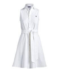 Ralph Lauren Women's Belted Oxford Sleeveless Shirtdress White